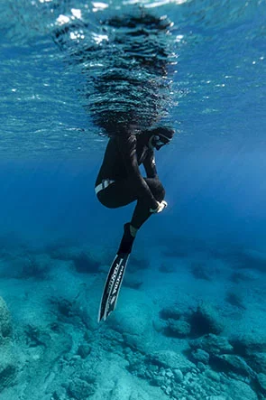 Like meditation, freediving involves breath control, mental focus, and relaxation. As we submerge and hold our breath, deeply embedded mammalian reflexes are gradually activated: the body redirects oxygen to vital organs and slows the heart rate.